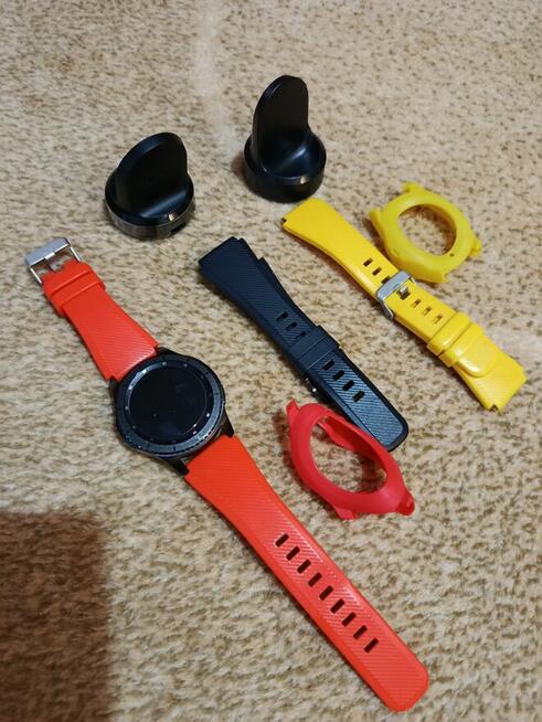 W zestawie pasek i case na tarczę w kolorze pomarańczowym i żółtym oraz dodatkowa ładowarka (do używania np. w ...
